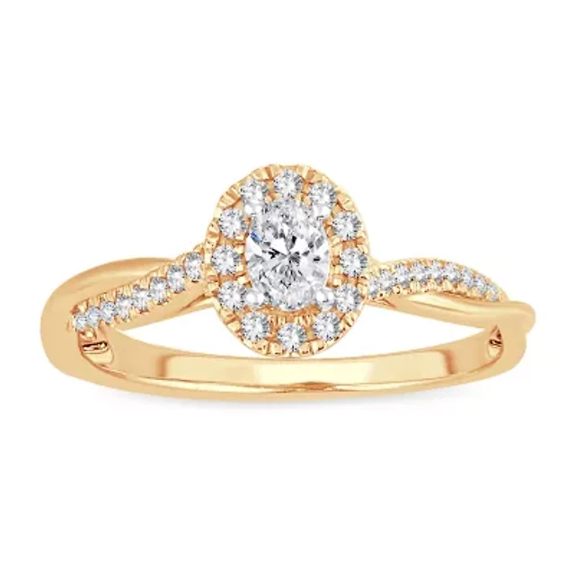 Womens 1 CT. T.W. Natural White Diamond 10K Rose Gold Oval Halo Engagement Ring