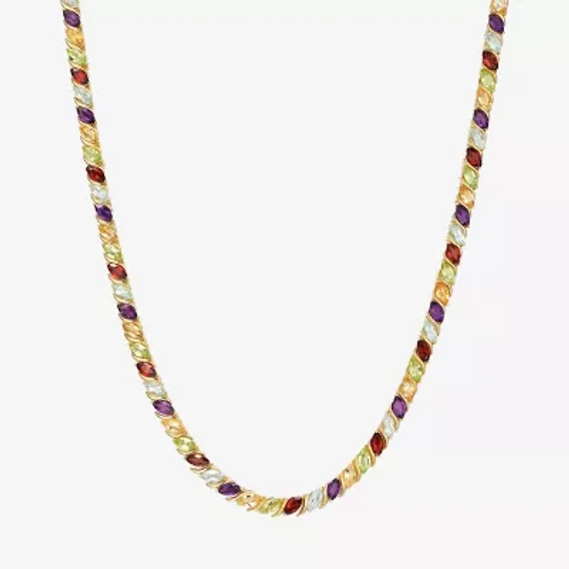 Womens White Sapphire 18K Gold Over Silver 17 Inch Tennis Necklace