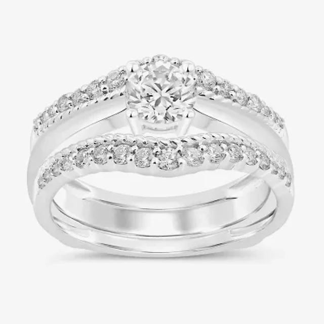 Womens 1 CT. T.W. Natural White Diamond 14K Gold Wedding Ring Guard