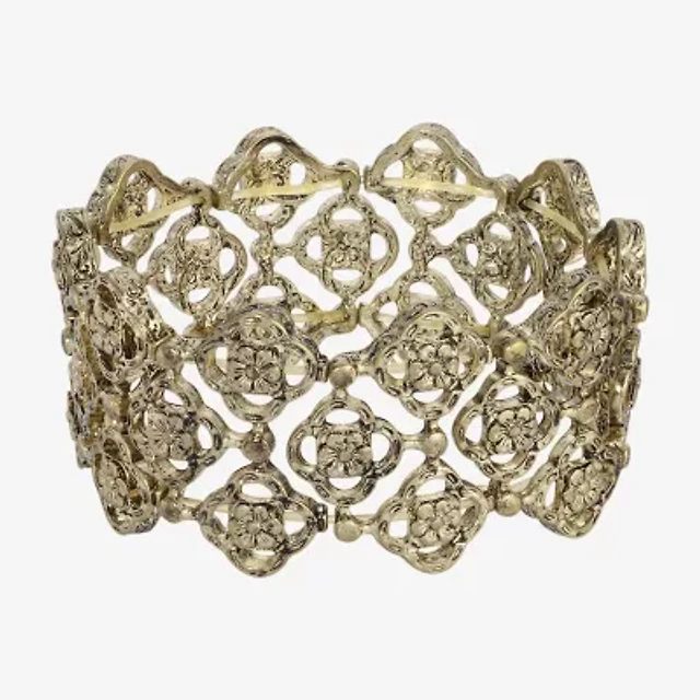 1928 Two-Tone Womens Flower Stretch Bracelet
