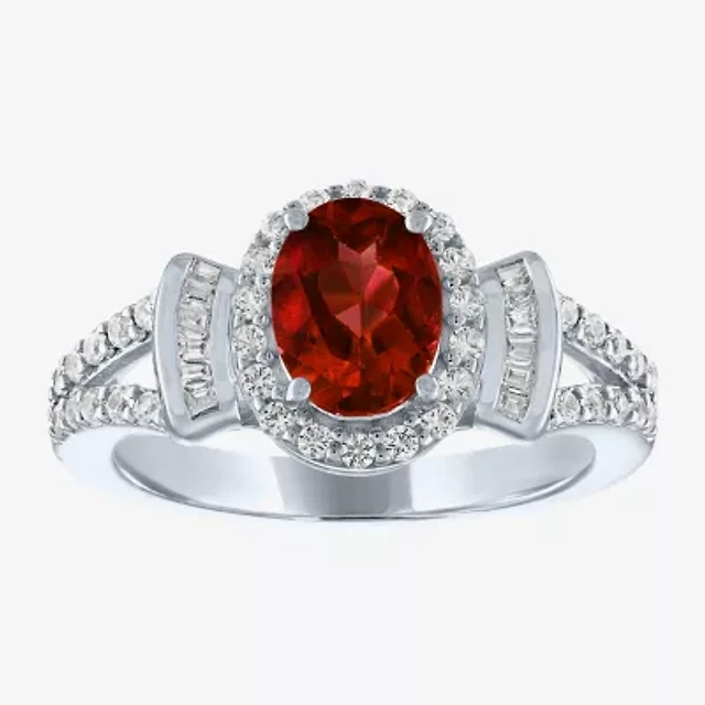 Womens Genuine Red Garnet Sterling Silver Oval Cocktail Ring