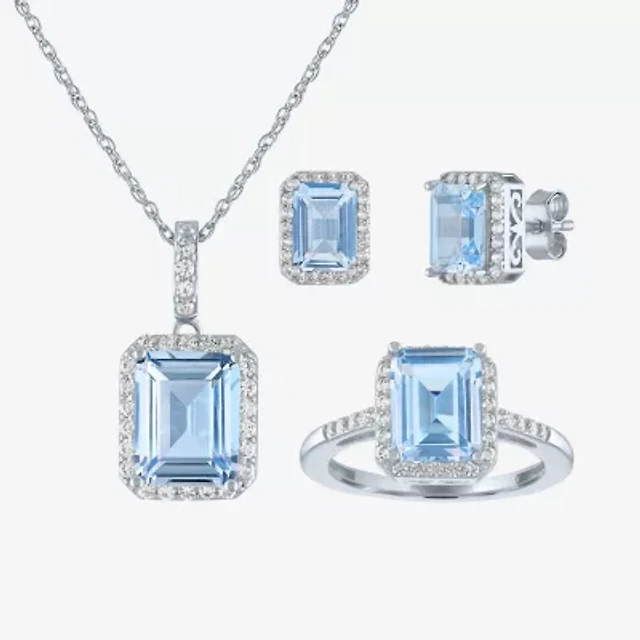 Womens Simulated Blue Aquamarine Sterling Silver 3-pc. Jewelry Set