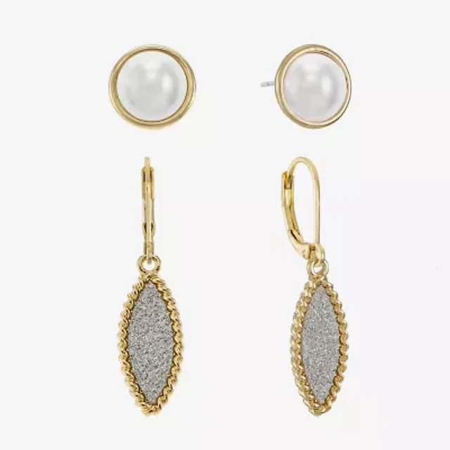 Sparkle Allure Threader Womens Crystal 2 Pair Earring Set