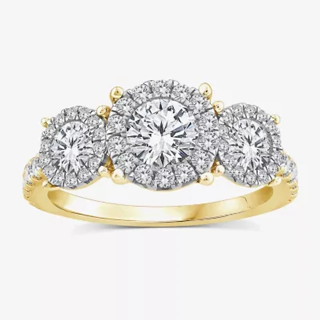(I / I1) Womens 1 CT. T.W. Lab Grown White Diamond 10K Gold 3-Stone Engagement Ring