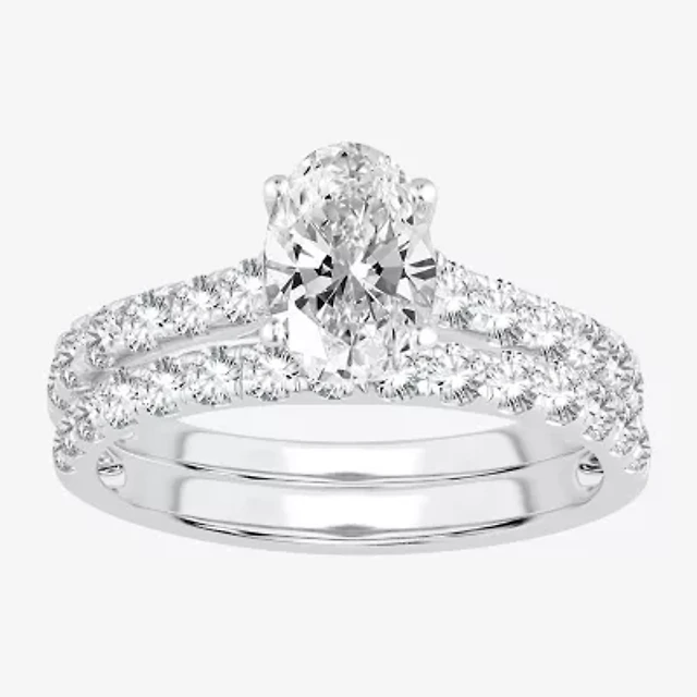 Signature By Modern Bride (H-I / Si1-Si2) Womens 2 CT. T.W. Lab Grown White Diamond 10K Gold Oval Bridal Set
