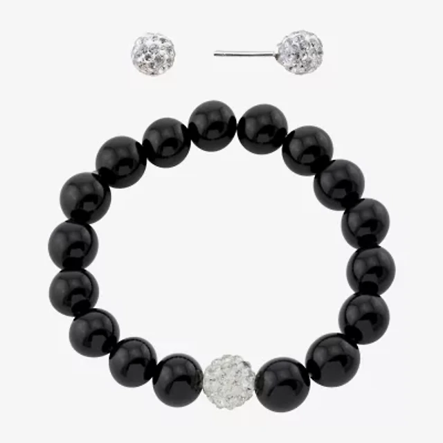 Sparkle Allure Stretch Bracelet & Stud Earring Womens Black Onyx Pure Silver Over Brass 2-pc. Jewelry Set