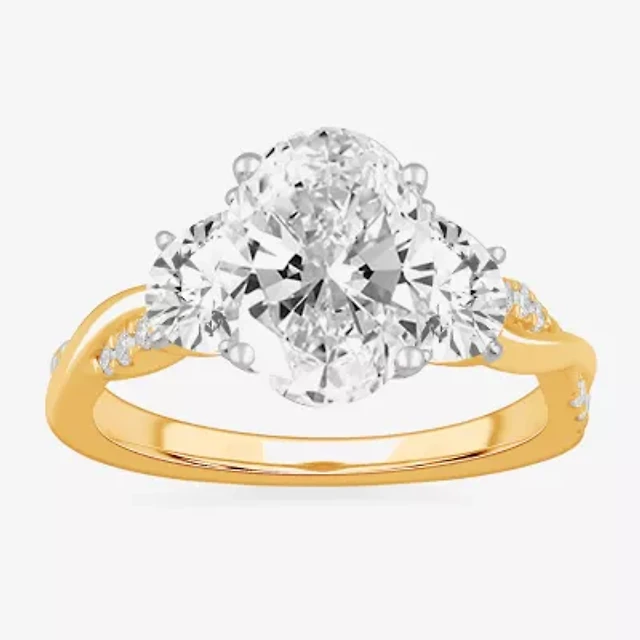 G-H / Si1-Si2) Womens 3 3/4 CT. T.W. Lab Grown White Diamond 14K Gold Oval 3-Stone Engagement Ring