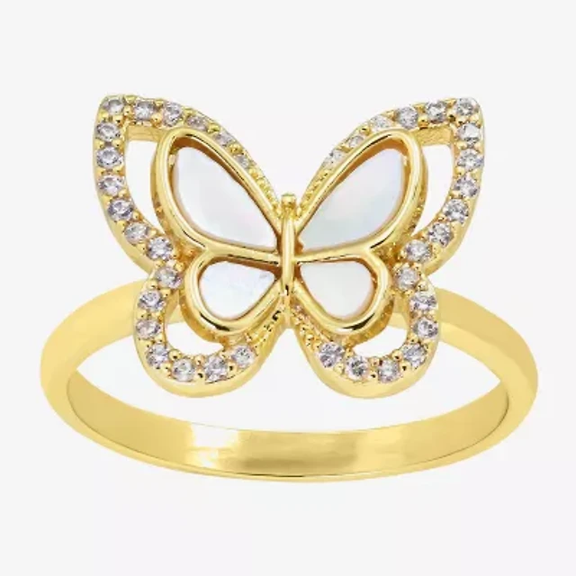Sparkle Allure Womens White Simulated Pearl 14K Gold Over Brass Butterfly Cocktail Ring