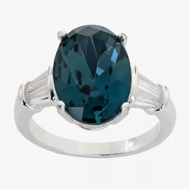 Sparkle Allure Solitaire Womens Blue Crystal Pure Silver Over Brass Oval Cocktail Ring