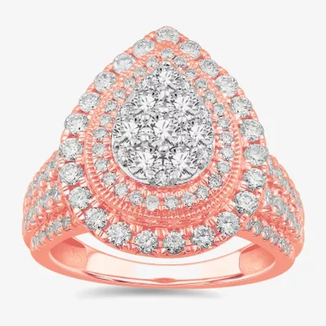 Womens 1 CT.T.W. Natural Diamond 10K Gold Pear Side Stone Halo Bridal Set