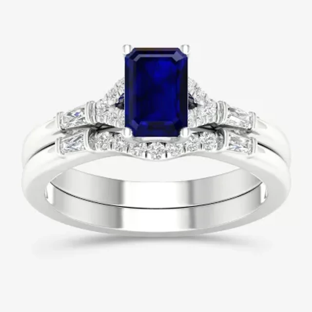 Effy Final Call Womens 1/2 CT. T.W. Lab Created Blue Sapphire 14K White Gold Cushion Halo Cocktail Ring