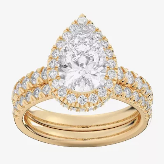 (I / I1) Womens 4 CT. T.W. Lab Grown White Diamond 10K Gold Side Stone Halo Bridal Set