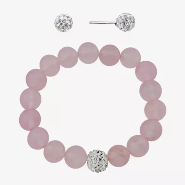 Sparkle Allure Stretch Bracelet & Stud Earring Womens Pink Quartz Pure Silver Over Brass 2-pc. Jewelry Set