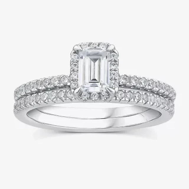 (I / I1) Womens 2 CT. T.W. Lab Grown White Diamond 10K Gold Side Stone Halo Engagement Ring