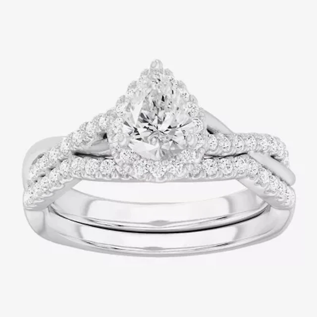 (G-H/SI1-SI2) Womens 1 CT. T.W. Lab Grown White Diamond 10K Gold Pear Halo Engagement Ring