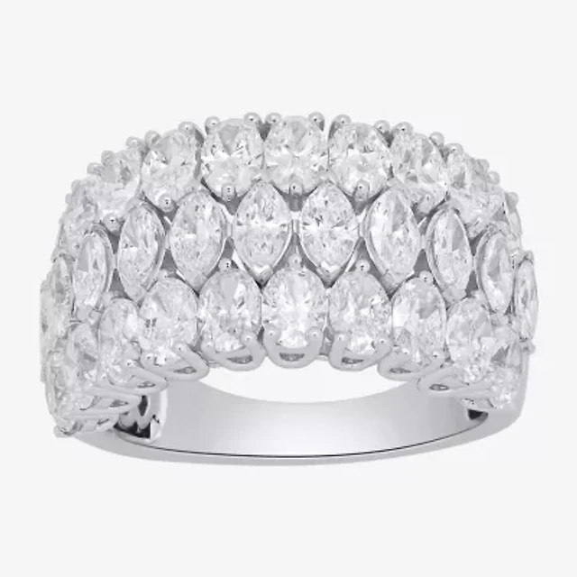 Womens 4 CT. T.W. Lab Grown White Diamond 10K Gold Marquise Cluster Halo Cocktail Ring