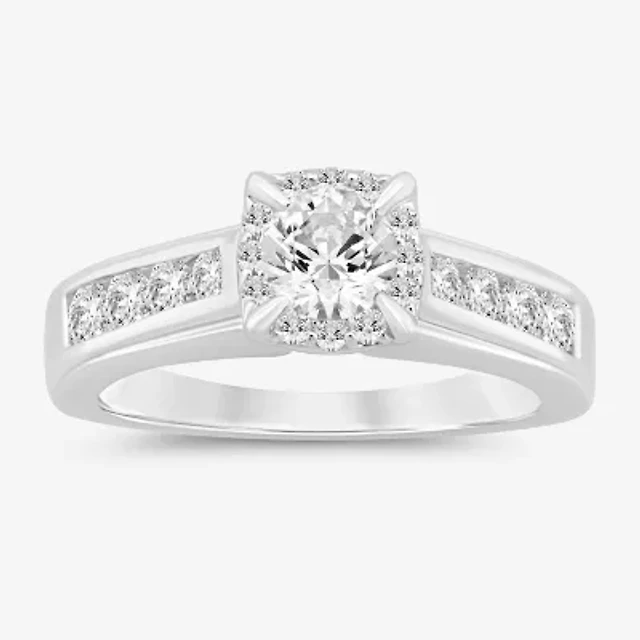(I / Si2) Womens 1 CT. T.W. Lab Grown White Diamond 10K Gold Round Side Stone Halo Engagement Ring