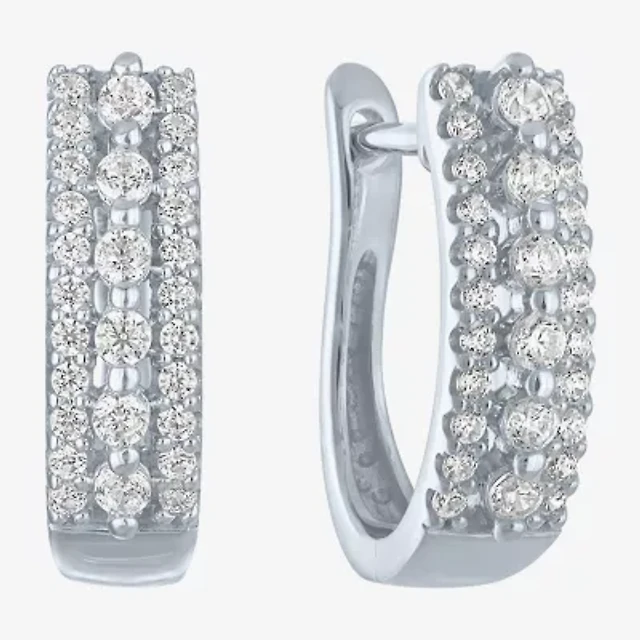 (G-H / I1-I2) Womens 1/2 CT. T.W. Lab Grown White Diamond 10K White Gold 13.6mm Hoop Earrings