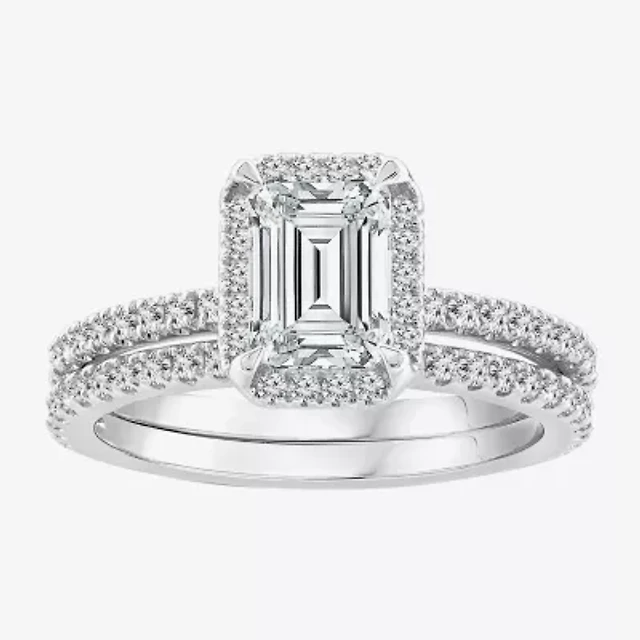 (G-H / Si1-Si2) Womens 1 1/3 CT. T.W. Lab Grown White Diamond 10K Gold Cushion Side Stone Halo Bridal Set