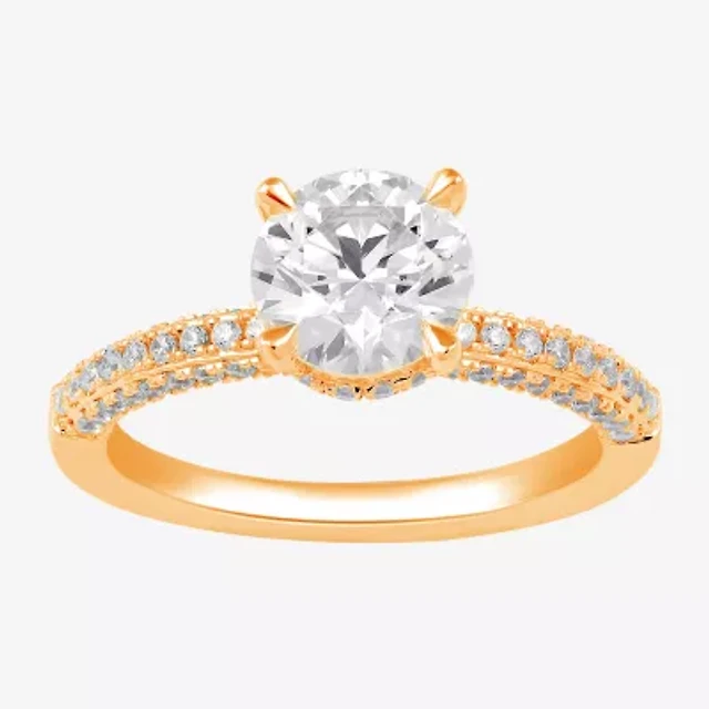 (G / Si2) Womens 1 1/3 CT. T.W. Lab Grown White Diamond 10K Gold Round Side Stone Engagement Ring