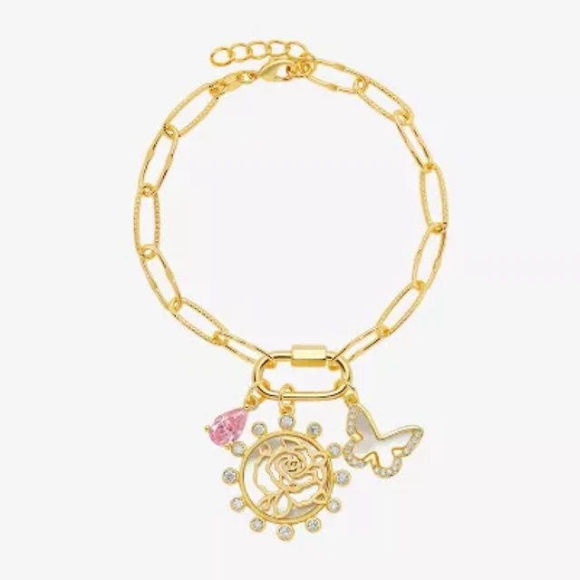 Gold Reflections Love Womens Gray Crystal 14K Gold Over Brass Round Beaded Bracelet