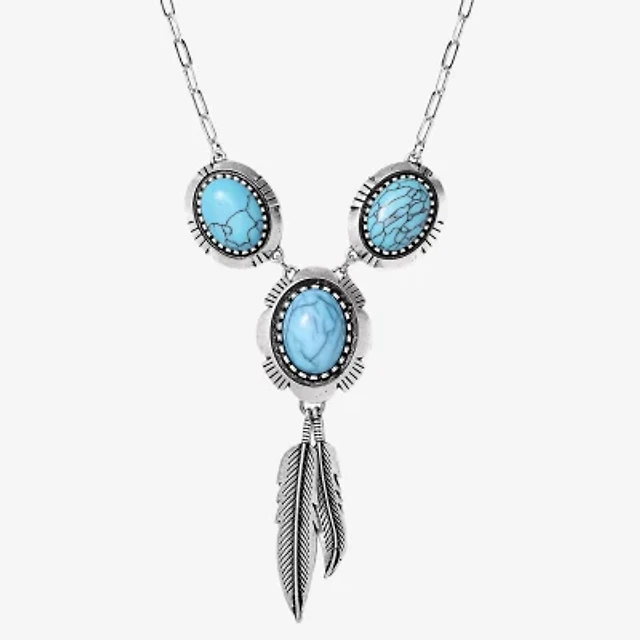 JS Jessica Simpson Silver Tone Feather Womens Turquoise Alloy 17 Inch Y Necklace