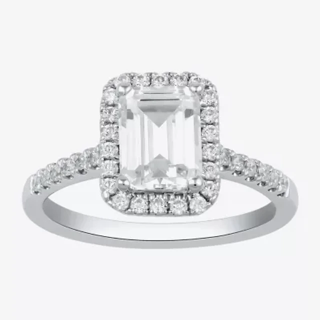 G / I1) Womens 1 1/2 CT. T.W. Lab Grown White Diamond 10K Gold Halo Engagement Ring