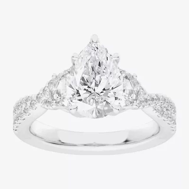 Signature By Modern Bride (G-H / Si1-Si2) Womens 2 3/4 CT. T.W. Lab Grown White Diamond 14K Gold Pear Round Side Stone Engagement Ring