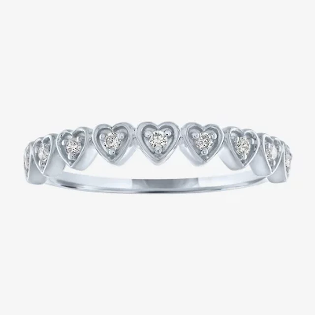 (G-H / Si2-I1) Womens 1/10 CT. T.W. Lab Grown White Diamond 10K Gold Heart Band
