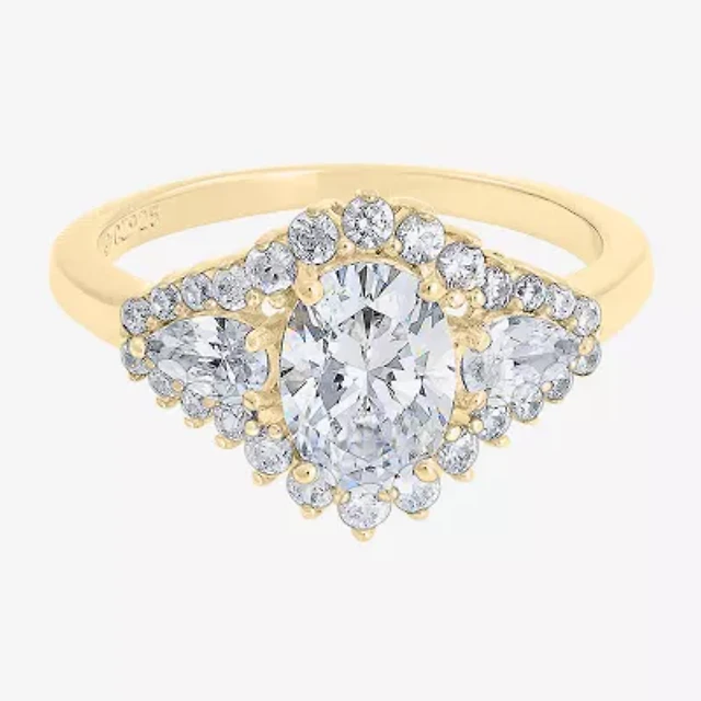 Diamonart Womens Cubic Zirconia 14K Gold Over Silver Sterling Oval Pear 3-Stone Engagement Ring