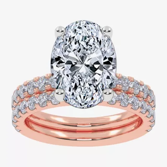 Signature By Modern Bride (G / Vs2-Si1) Womens 4 CT. T.W. Lab Grown White Diamond 14K Gold Oval Side Stone Bridal Set