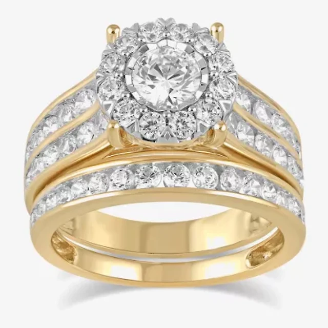 Signature By Modern Bride (G / Si1-Si2) Womens 5 CT. T.W. Lab Grown White Diamond 14K Gold Oval Side Stone Halo Bridal Set