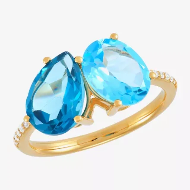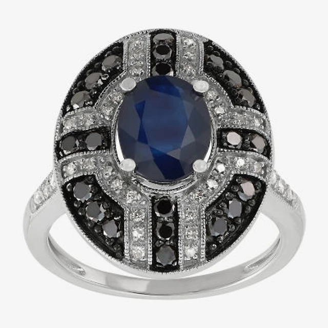 Womens Diamond Accent Lab Created Sapphire Sterling Silver Heart Cocktail Ring