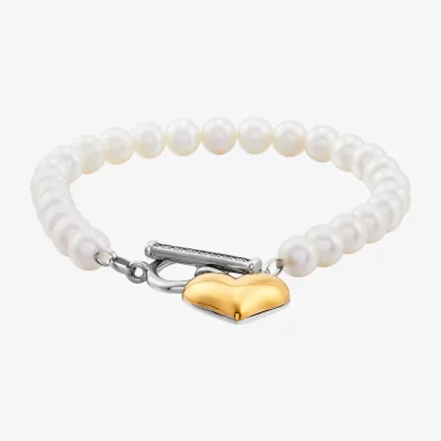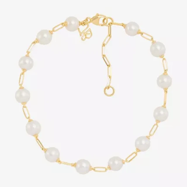 Womens Dyed White Cultured Freshwater Pearl 14K Gold Over Silver Evil Eye Charm Bracelet