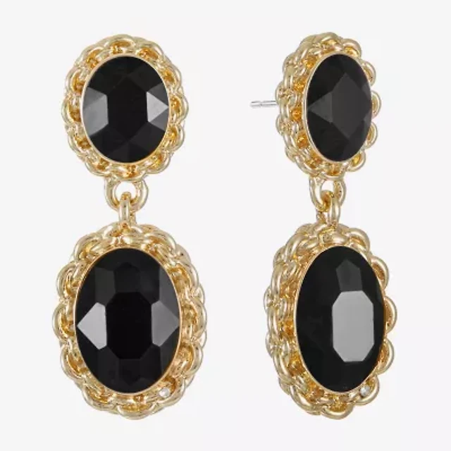 Monet Jewelry Gold Tone Womens Black Glass Oval Hypoallergenic Drop Earrings