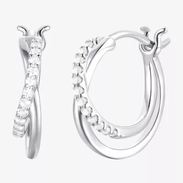 Yes Please! Womens Lab Created White Sapphire Sterling Silver 14.5mm Hoop Earrings