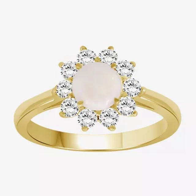 Womens 3 5/8 Ct. T.W. Genuine White Opal 10K Gold Round Halo Cocktail Ring