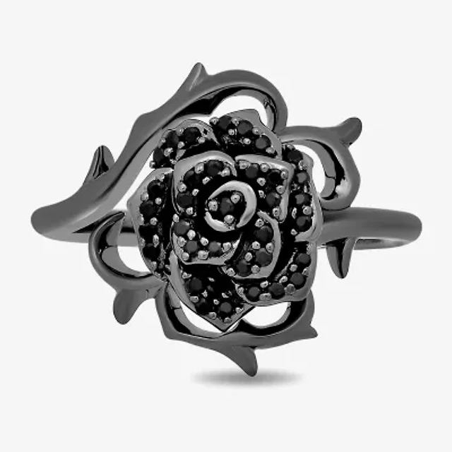 Enchanted Disney Fine Jewelry Womens 1/8 CT. T.W. Genuine Black Onyx Sterling Silver Marquise Maleficent Halo Side Stone Cocktail Ring