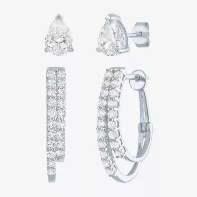 Yes, Please! Womens Lab Created White Sapphire Sterling Silver Pear Round 2 Pair Jewelry Set