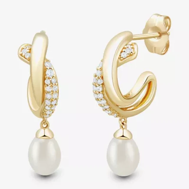 Womens White Cultured Freshwater Pearl 14K Gold Over Silver Sterling Silver Drop Earrings