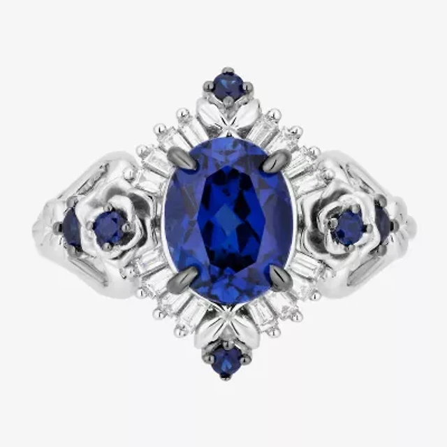 Enchanted Disney Fine Jewelry Cinderella(F, Si1) Womens Lab Created Blue Sapphire Sterling Silver Oval Cinderella Cocktail Ring