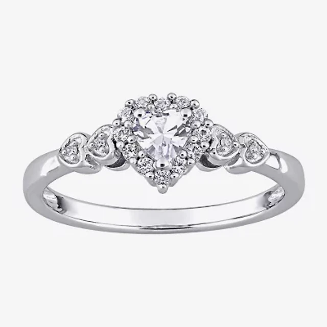 Womens Diamond Accent Lab Grown White 10K Gold Cross Heart Band