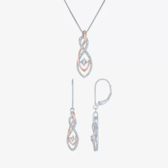 (G-H, Si2-I1) Womens 1/10 CT. T.W. Lab Grown White Diamond 14K Rose Gold Over Silver Jewelry Set