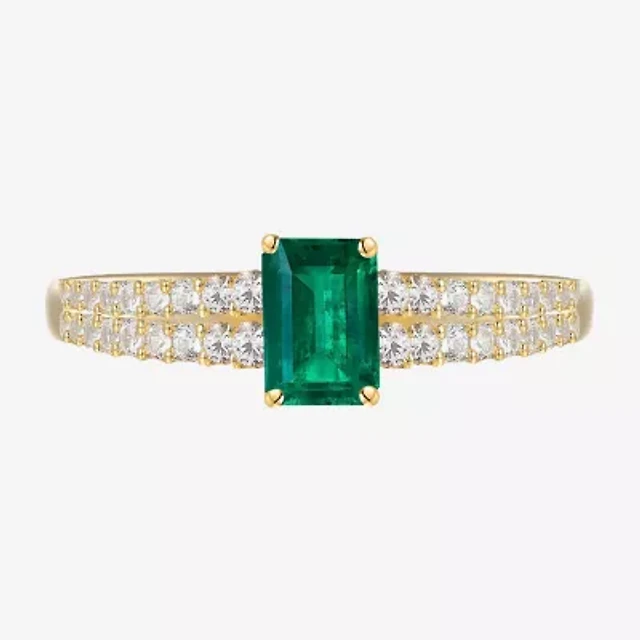 (I-J/I2-I3) Womens Diamond Accent Genuine Gemstone 10K Gold Cushion Side Stone Cocktail Ring