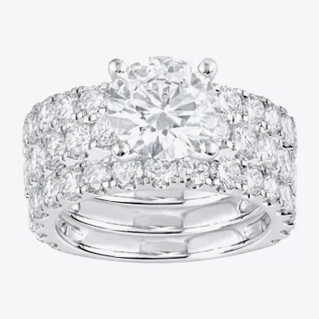 (F / Vs2) Womens 5 CT. T.W. Lab Grown White Diamond 14K Gold Round Side Stone Engagement Ring