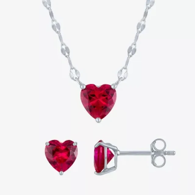 Yes, Please! Womens Lab Created Red Drusy Sterling Silver Heart 2-pc. Jewelry Set