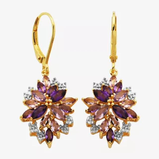 Womens 1/10 CT. T.W. Natural White Diamond 14K Rose Gold Over Silver Flower Beauty and the Beast Belle Princess Drop Earrings