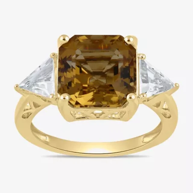 Womens Genuine Yellow Citrine 14K Gold Over Silver Side Stone Cocktail Ring