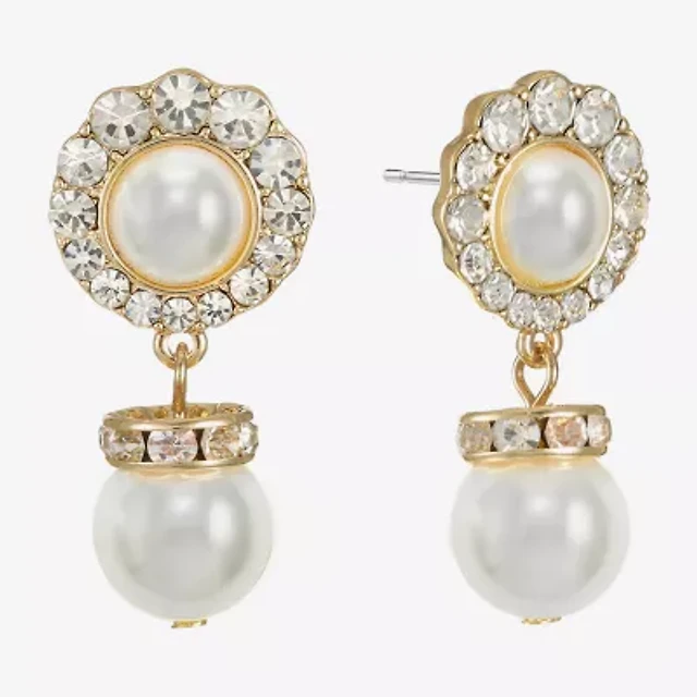 Monet Jewelry Timeless Silver Tone Halo Womens Glass Simulated Pearl Oval Hypoallergenic Drop Earrings