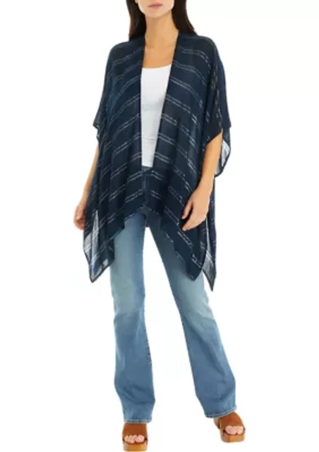 Women's Lurex Double Border Knit Striped Ruana Wrap